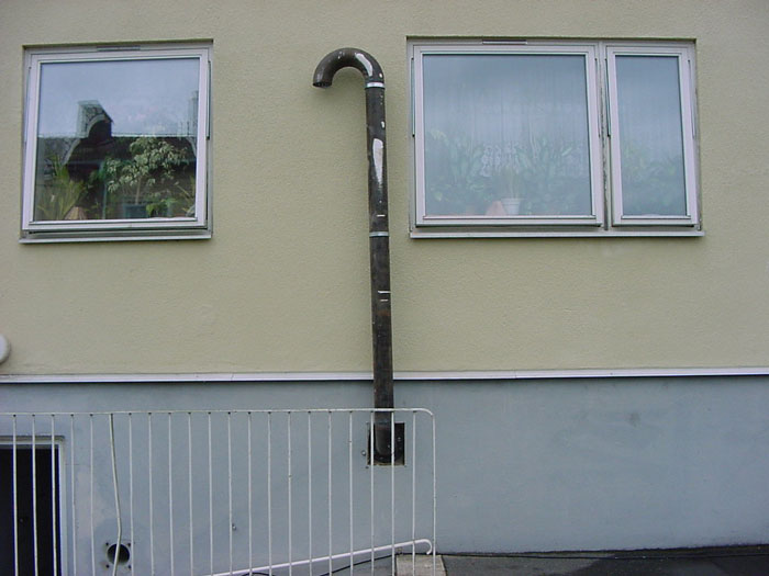 Kanal som leder ut förbrukad luft från skyddsrummet till luftslussen, passerar via toalettutrymmena.