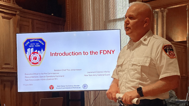 På tisdagen fortsatte delegationen till New York City, för möten med nationalgardet. GD samtalade med chefen för NY National Guard, Major General Shields, och de konstaterade att det civila samarbetet inom SPP-avtalet, som undertecknades av Pål Jonson förra året, har fått en flygande start! MSB koordinerar de civila parterna inom SPP-samarbetet, och det finns goda möjligheter till fortsatt samarbete inom exempelvis civil-militär samverkan, CBRN, övning och lärdomar från storskaliga händelser. Polisen, Kriminalvården och Kustbevakningen är exempel på andra svenska myndigheter som visat intresse.