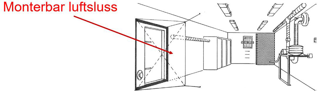 Den monterbara luftslussen finns i skyddsrum typ 2 & 3 (TB74, TB78, SR – byggda från 1974 och framåt).