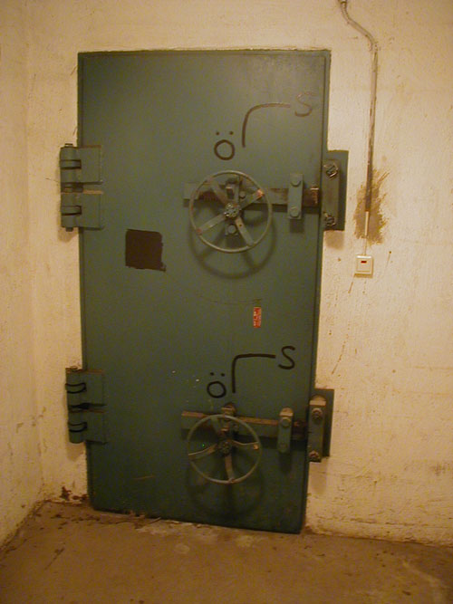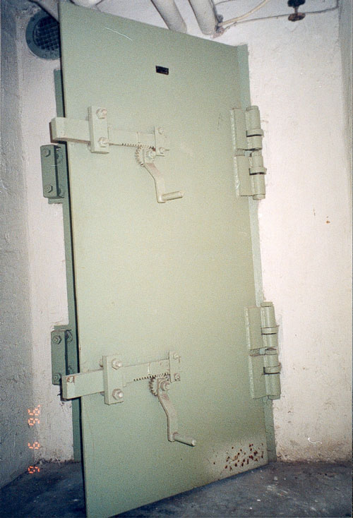 Det som kännetecknar denna dörr är att den går inåt, alla senare skyddsrumsdörrar går utåt. Av den orsaken kan dörren även räknas som en reservutgång som ska öppnas inåt i skyddsrummet.