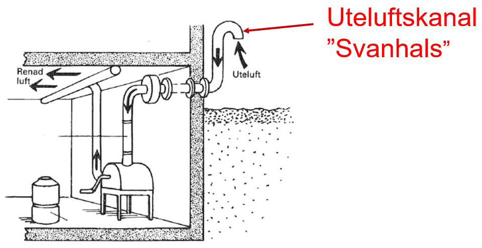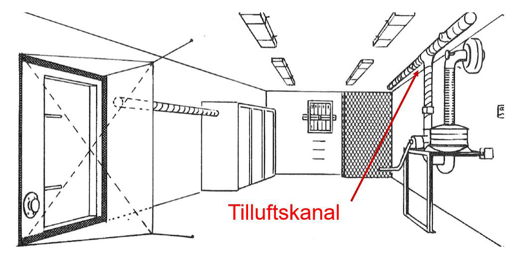 Kanal som leder uteluft in till skyddsrummet.