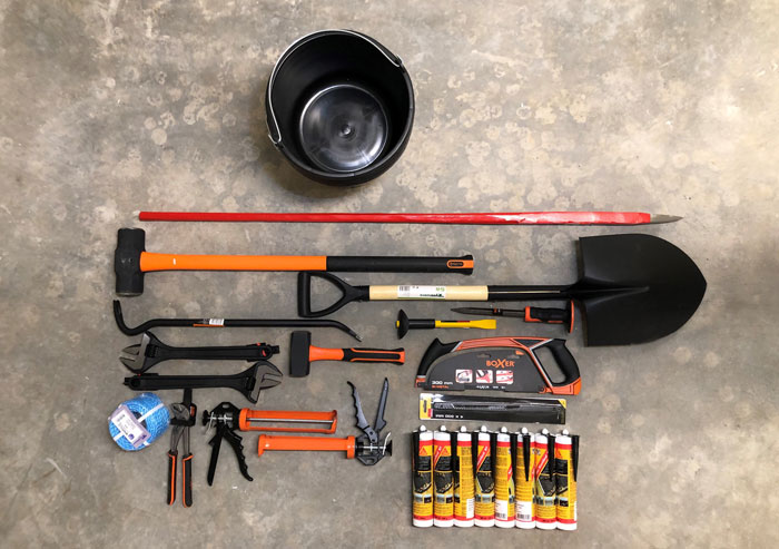 Till varje skyddsrum ska finnas den utrustning som behövs för att ställa i ordning det. På denna sida hittar du bilder och förklaringar till ett urval av den utrustning som finns.