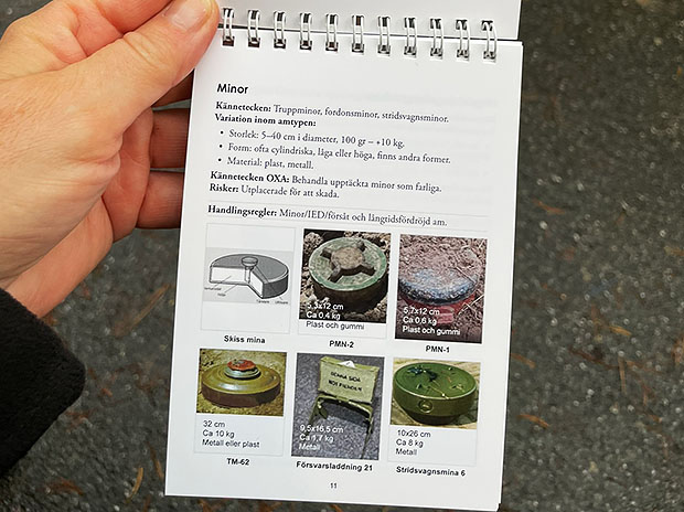 Utbildningen innehåller både teoretiska och praktiska moment som ska ge grundläggande kunskaper för egen säkerhet, riskbedömning och taktiskt uppträdande i krig.