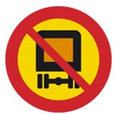 Nedan visas vägmärket för förbud mot transport av farligt gods med märkningspliktiga fordon, det vill säga med fordon som ska vara försedda med orangefärgade skyltar eller med märkningen för begränsad mängd. Vägmärket tillsammans med tilläggstavlan för tunnelkategorin ska vara placerad före varje tunnel där det råder restriktioner för passage.