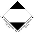 Märkningen ska ha formen av en kvadrat vinklad 45° (diamantformad). Den övre och undre delen samt begränsningslinjen, ska vara svart. Den centrala ytan ska vara vit eller ha en lämplig kontrasterande bakgrund. Minsta dimension är 100 mm × 100 mm och kvadratens begränsningslinje ska vara minst 2 mm bred. Alla delar i märket ska vara i ungefärlig proportion till de dimensioner som visas i bilden. Om kollits storlek kräver det får dimensionerna minskas till 50 mm × 50 mm förutsatt att märkningen förblir tydligt synlig. Bredden på begränsningslinje får då förminskas till 1 mm.
