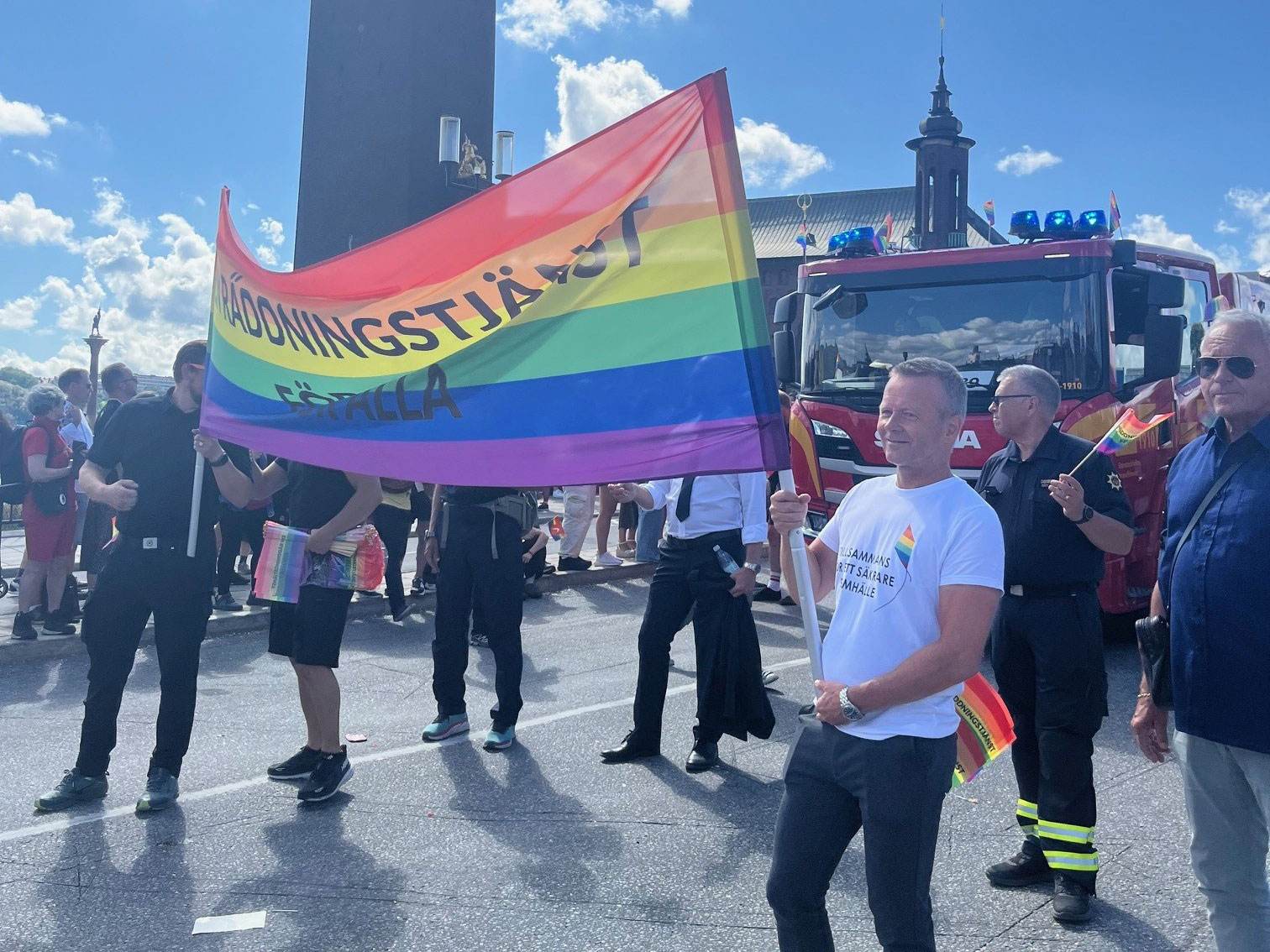Längst fram i vår och räddningstjänstens sektion av Prideparaden gick GD Mikael Frisell