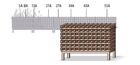 Ett provbål för A-brand består av staplade trästavar där bålet är 5x5 decimeter samt har en längd i dm som motsvarar effektivitetsklassen. Exempelvis motsvarar effektivitetsklass 13A ett virkesbål som är 0,5 meter högt, 0,5 meter brett och 1,3 meter långt.