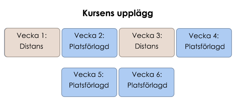 Kursen genomförs med fokus på aktivt lärande genom bland annat föreläsningar, diskussioner, scenarioövningar/case, seminarier, simulering samt interaktivt via lärplattform.